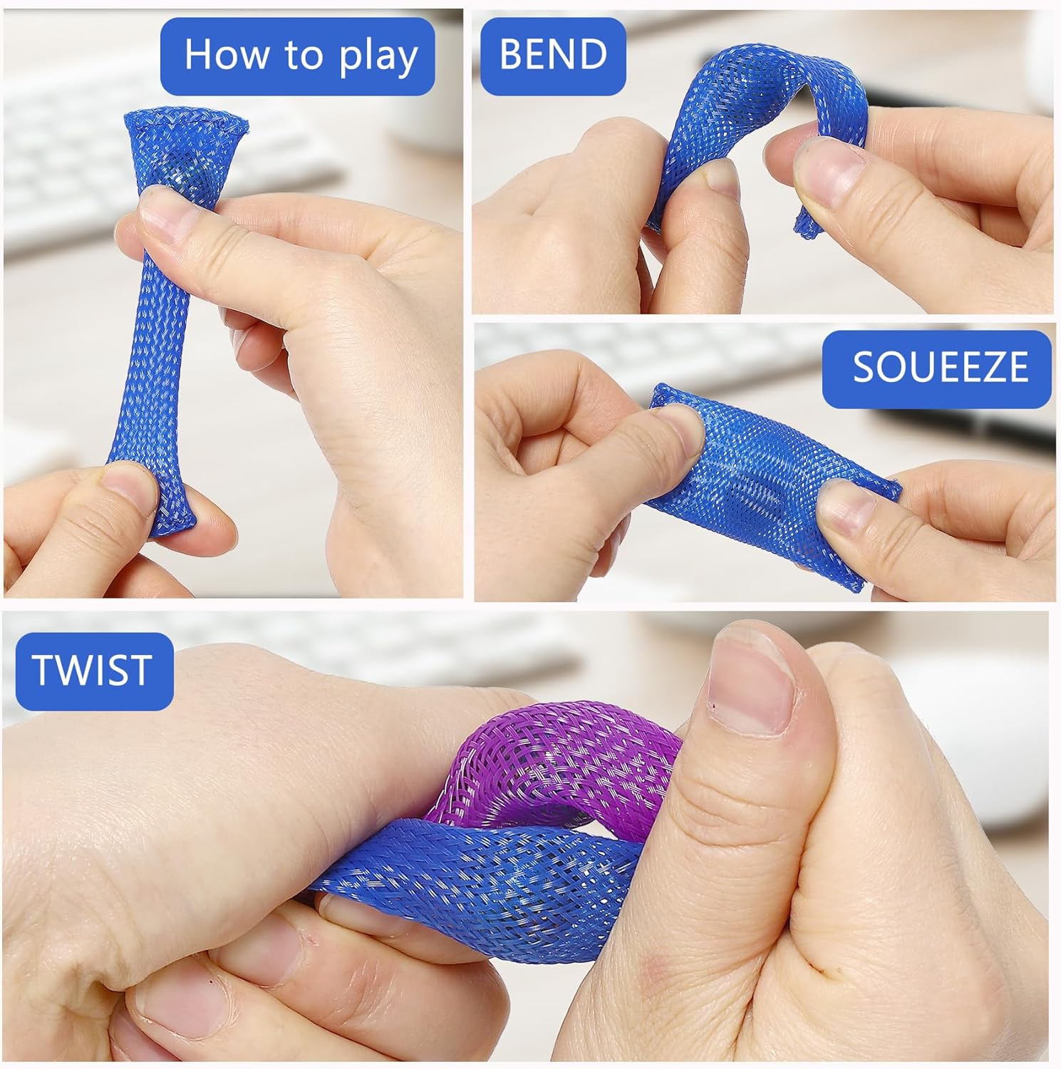 - 🎁8 Pcs Fidget Packs:2 Flippy Roller Chains,2 mesh and marble fidget toys,2 Cubes,2Robot Fidget Spinners.4 kinds of various fidget toys help you relieve stress.