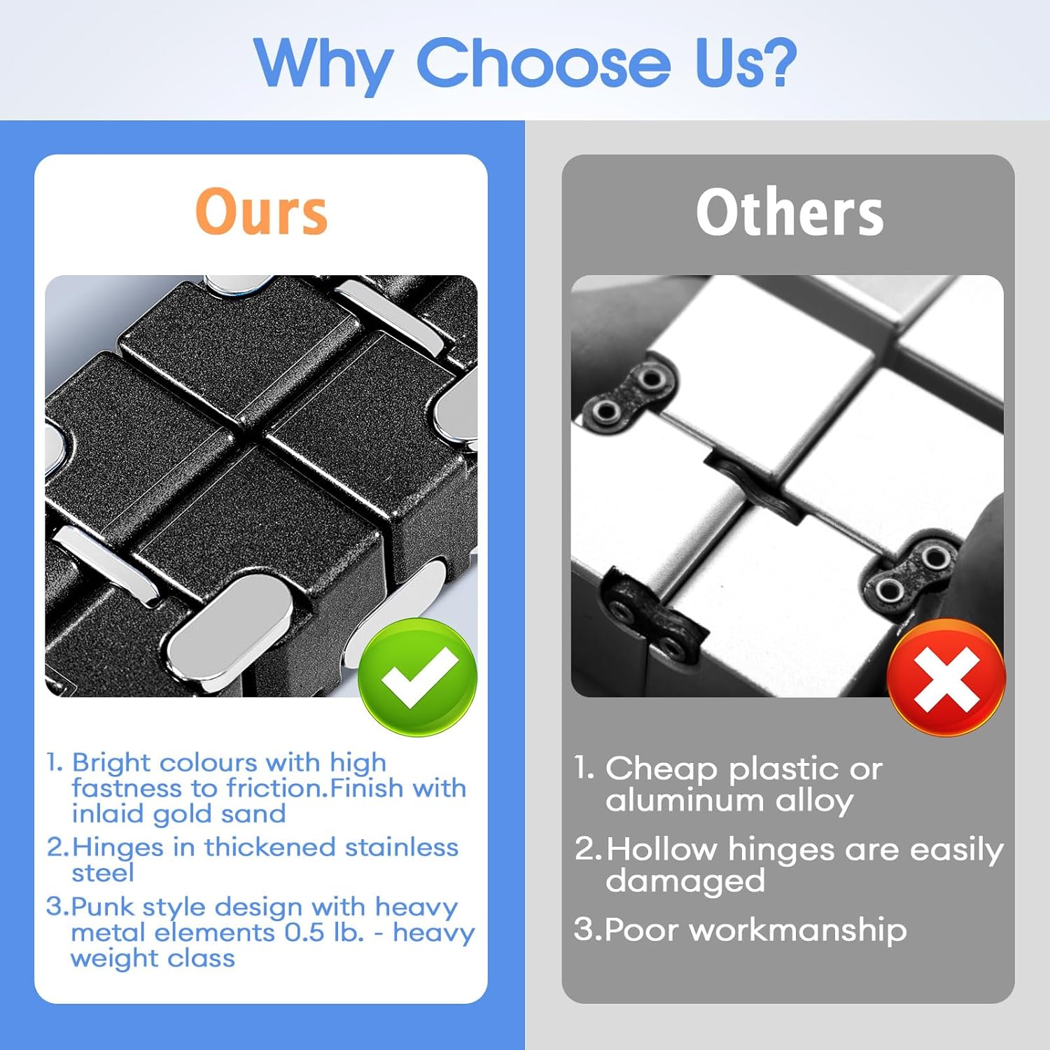 - 【Enhanced Hinge Design】We've upgraded the hinge material from hollow brass to solid stainless steel, increasing its thickness from 2.0mm to 2.8mm. This improvement ensures a more robust and durable cube.