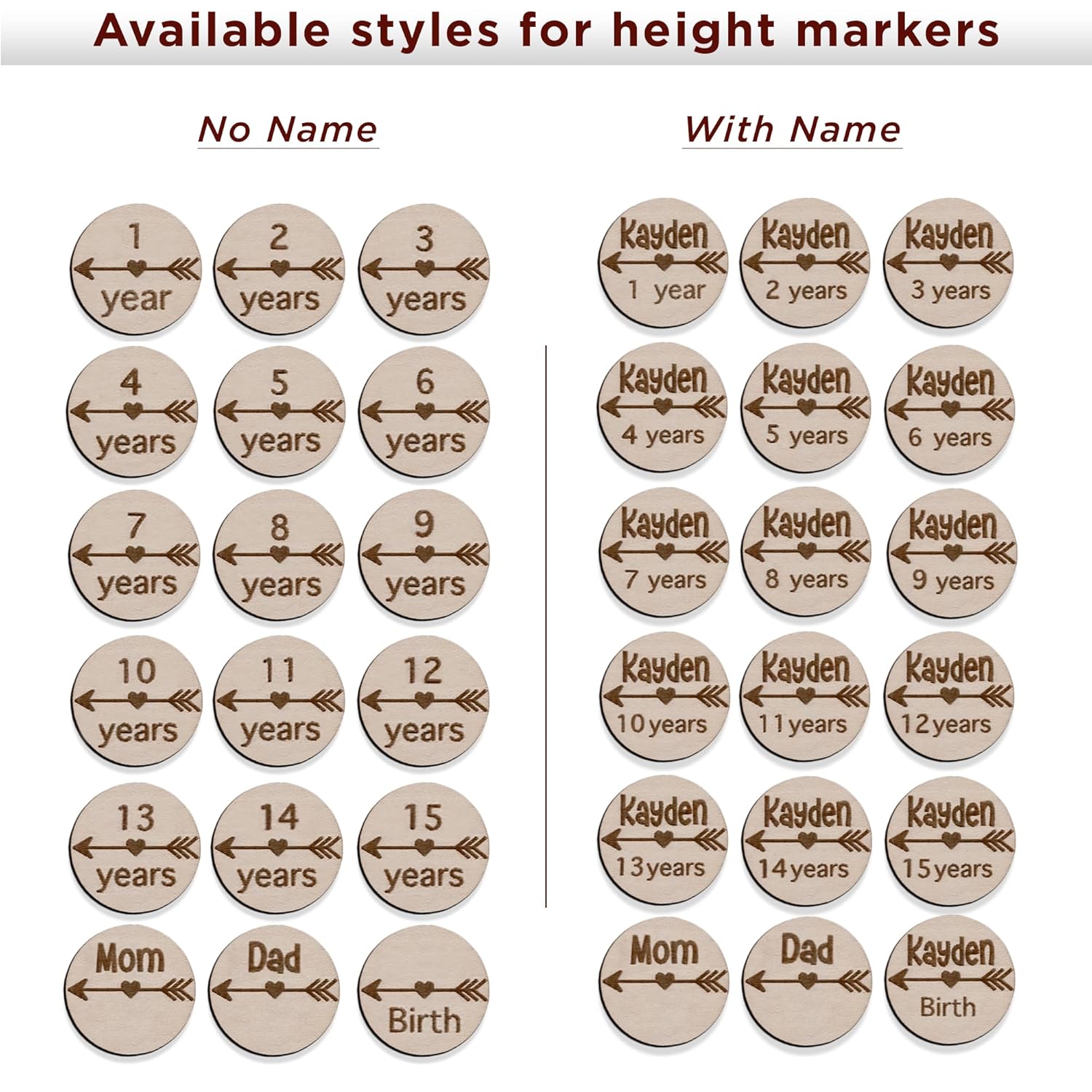 - Set included: one marker for mom, one for dad and 16 personalized(from birth to 15 years) with child's nameEasy to hang on a ruler: comes with double-sided stickers