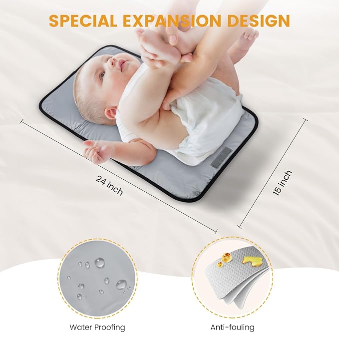 - Large Capacity: Large diaper bag size:11.7L*5.7W*16.2H,Diaper pad size:24L*15W,Weight:1.98lbs.13 pockets to keep baby essentials and your belongings organized. Separate front pocket for dirty/wet clothes/diapers.
