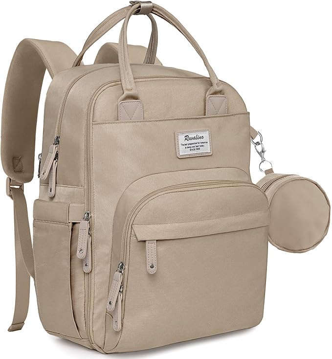RUVALINO Diaper Bag Backpack-Multifunction Baby Travel Bag with Changing pad, Insulated Bottle Holders & Pacifier Case, Large Capacity, Waterproof, Clay