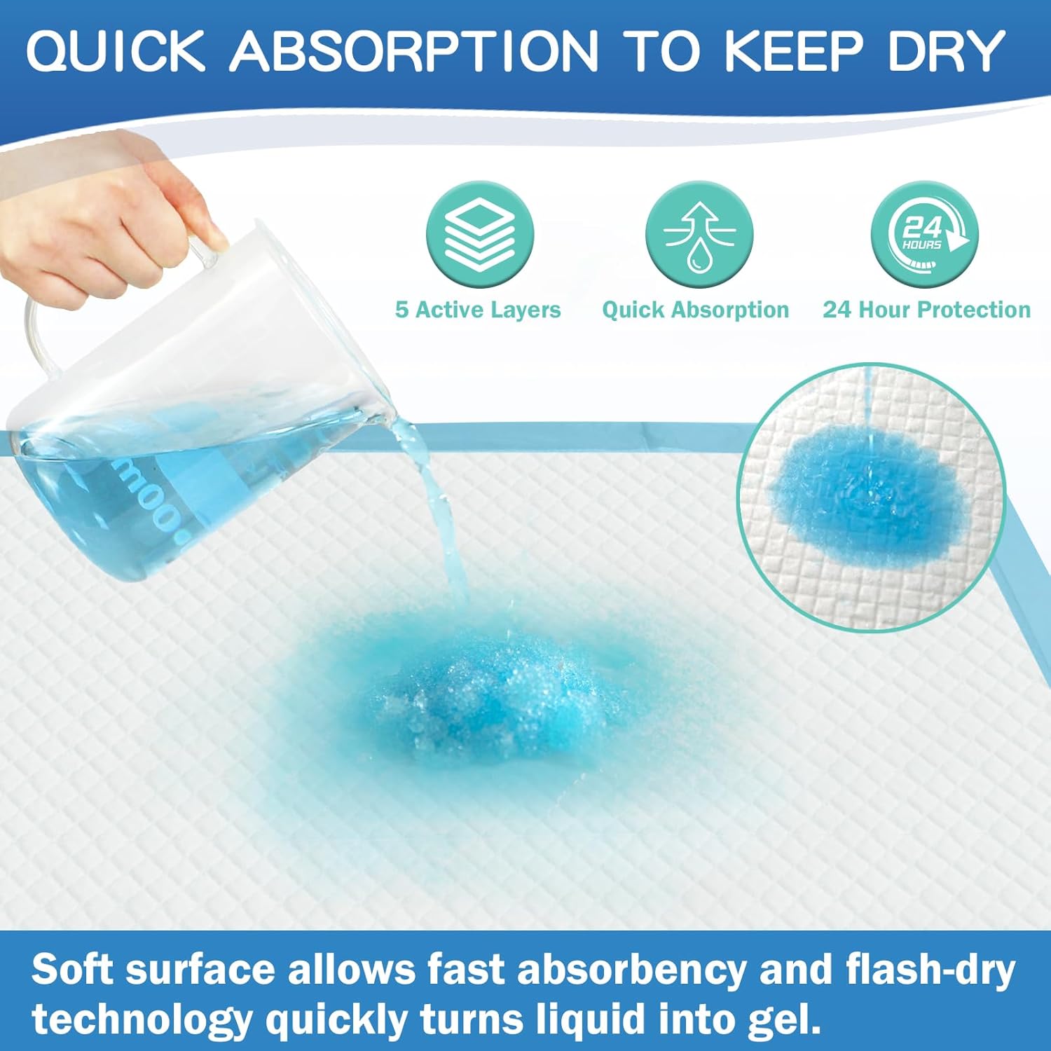 - Super Absorbent: Our premium bed pads with 6 layers can lock in large amount of liquid instantly.Rhombic embossing design helps to rapidly divert urine,keeping the surface dry.Size in 22"x23"(56x58 cm) can perfectly meet daily protection