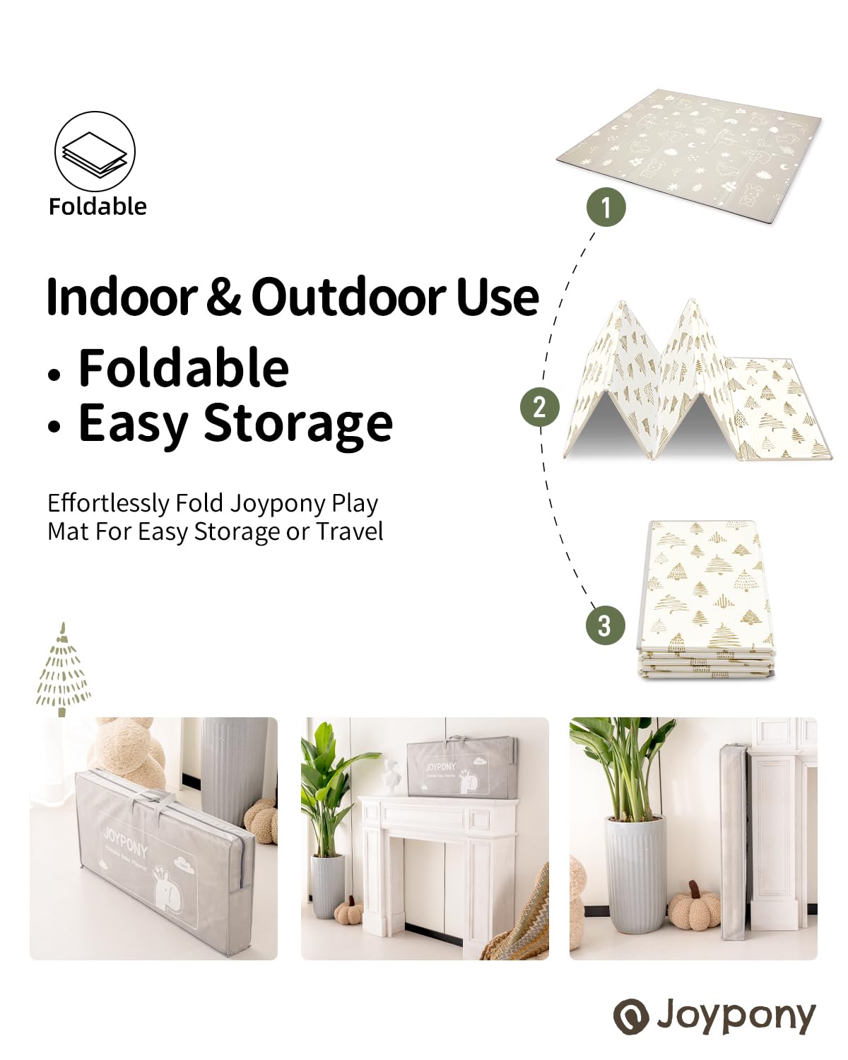 - [SAFETY & COMFORT - FOREMOST PROMISE] - Made from high-density XPE foam material, our baby play mat is BPA-free, child-friendly, and no chemical smell, ensuring a soft and safe play surface for infants and toddlers. Its cushioned design is perfect for protecting little ones from hard floors and providing extra support during tummy time. Joypony play mat is truly reliable, safe and and is ready to use right out of the box.
