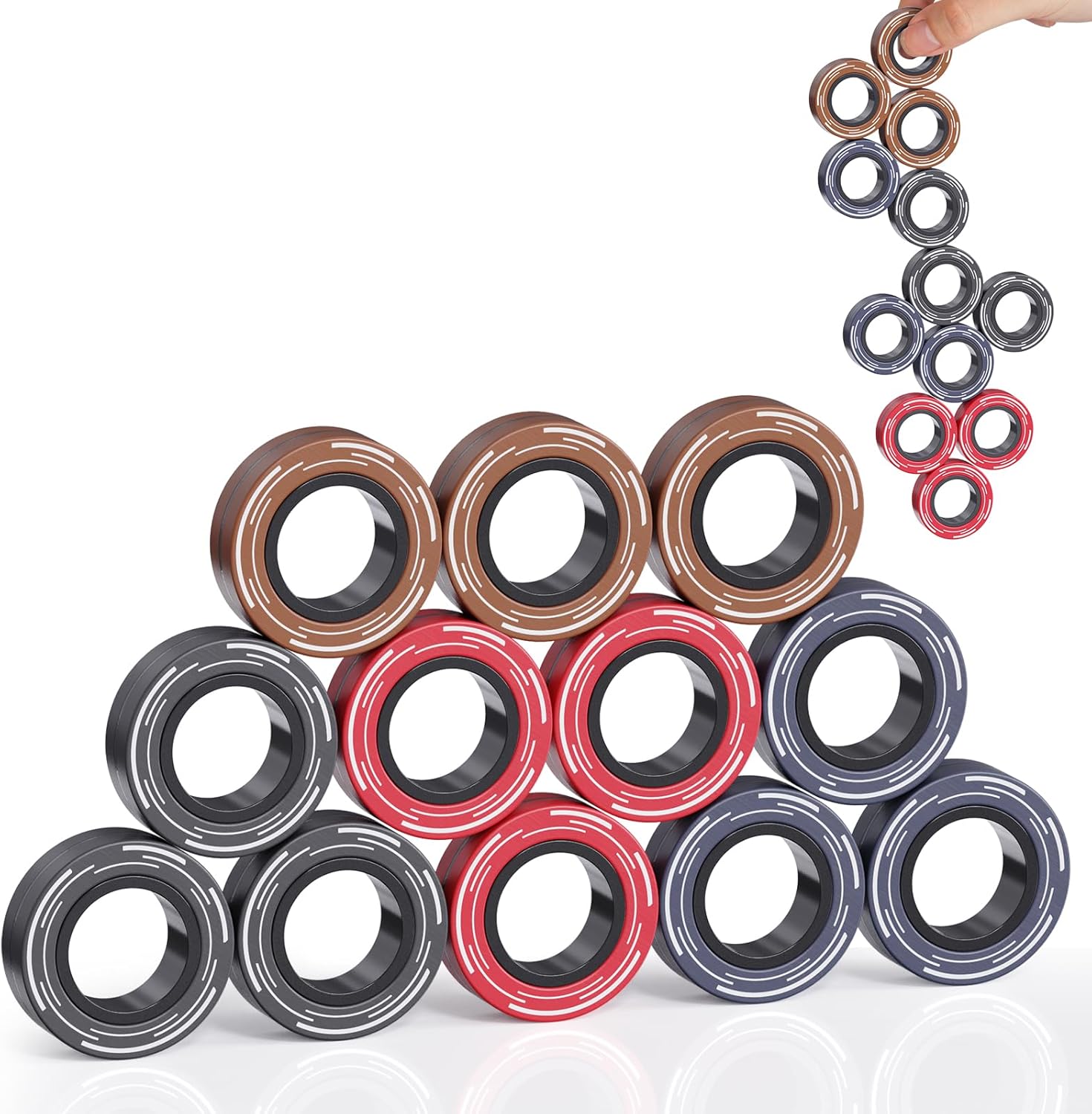 12Pcs Magnetic Rings Fidget Toy for Adult, Idea ADHD Anxiety Magnetic Fidget Toys Set Fidget Spinner Rings for Relief, Gifts for 8 9 10 11 12 13+ Year Old Boy Girl Teen