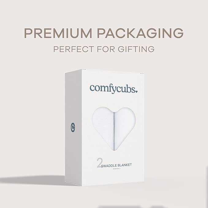Comfy Cubs Muslin Swaddle Blankets Pack of 2 - 47 x 47 Inch Soft Cotton Baby Blanket Set, Large Multipurpose Wraps for Newborns - Self-Soothing Swaddles for Newborns - White