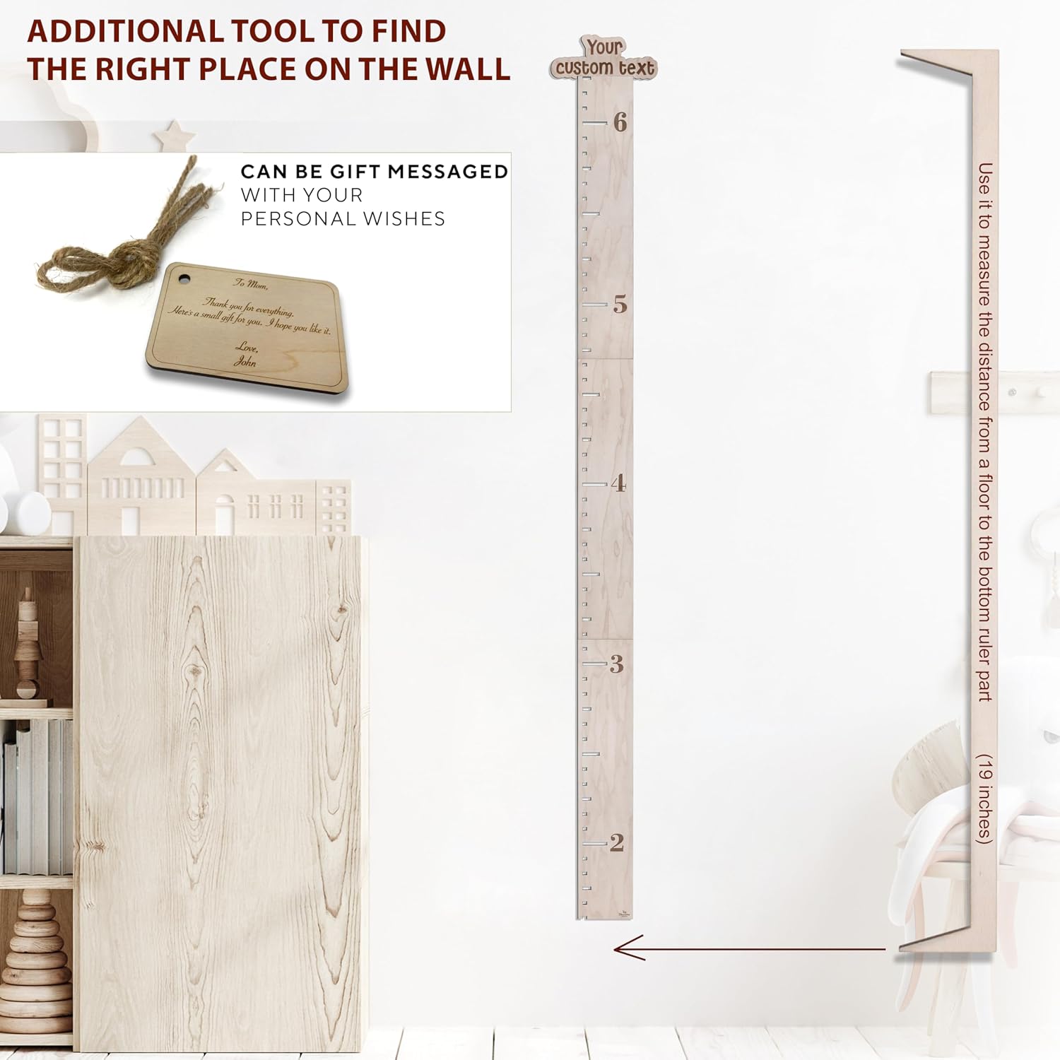Personalized Wooden Ruler Growth Chart for Kids with Height Markers, Custom Name Growth Chart Hanging Decor for Baby Boy & Girl, Family Measuring Board Wood, Wall Meter for Children (56 in x 3,5 in)