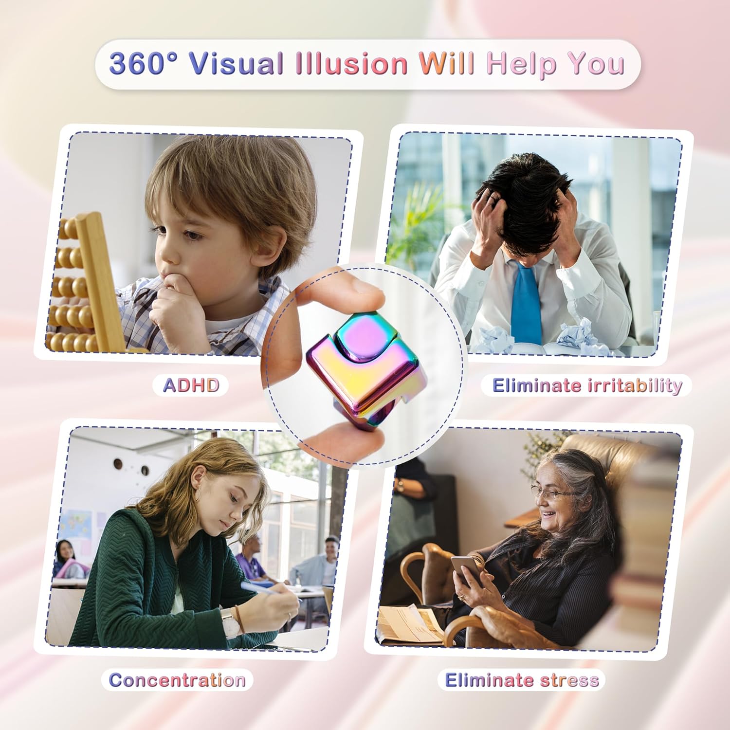 Desk-Fidget-Toys Spinner-Cube: Cool-Gadgets Metal Kinetic-Desk-Toys Office EDC-Toy with Silicone Base, ADHD Tools Cool-Stuff Thing Stress Relief Toy Gift for Kids Children Teens Adults Christmas