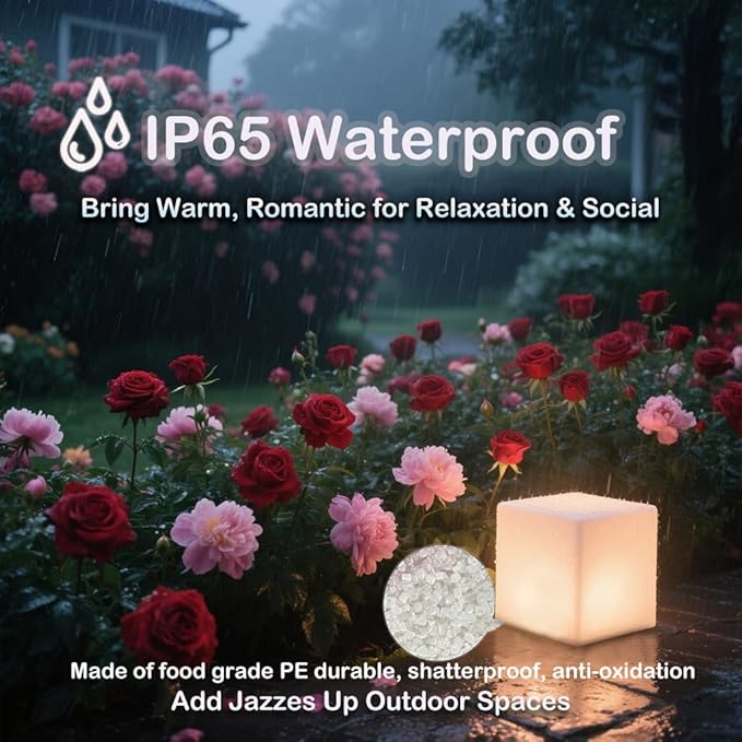 - Multifunctional Waterproof Cube: This LED cube light has excellent waterproof performance suitable for a variety of scenes. Can be used for bedroom bedside lamps, patio, garden, pool, pond, restaurant, bathroom, bar and party, cosplay, outdoor and indoor ambient decorative lighting