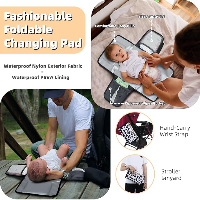 - FOLDABLE CHANGING PAD & ACCESSORIES INCLUDED: Comes with a foldable, waterproof changing pad (23”x 13”) for quick diaper changes, along with a detachable pacifier case and stroller straps to keep your hands free during outings.