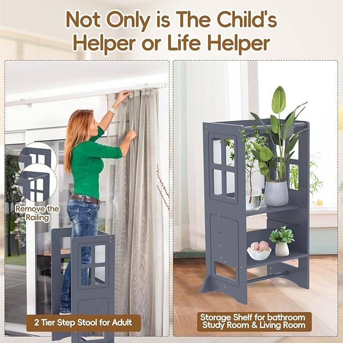 - 【Ultra-Stable & Safe Toddler Step Stool】:Designed for maximum safety, our heavy-duty kids learning standing tower (22 lbs / 10 kg) features a spacious platform (17.3*13.8*36in) to give toddlers room to move safely without collisions. 4-sided guardrails, 2 extra-wide non-slip steps, 2 non-skid feet and anti-skid base pads keep your child secure as they explore. Perfect for kitchen little helper tasks, this step stool for kids builds confidence and independence!