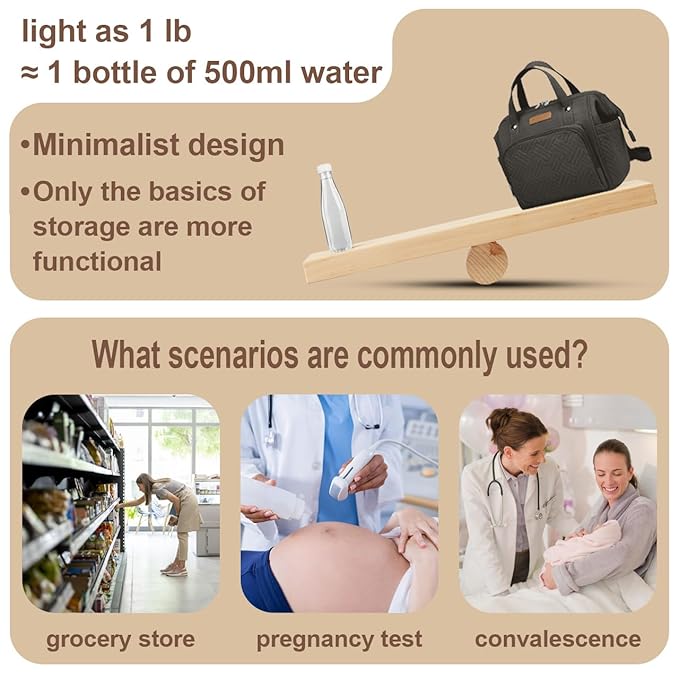 - Specially :designed for shopping, going to the park or short trips, and other occasions where you don't need to carry a lot of things, you don't need to carry a large bag, use this mini diaper bag instead.mini diaper bag instead.
