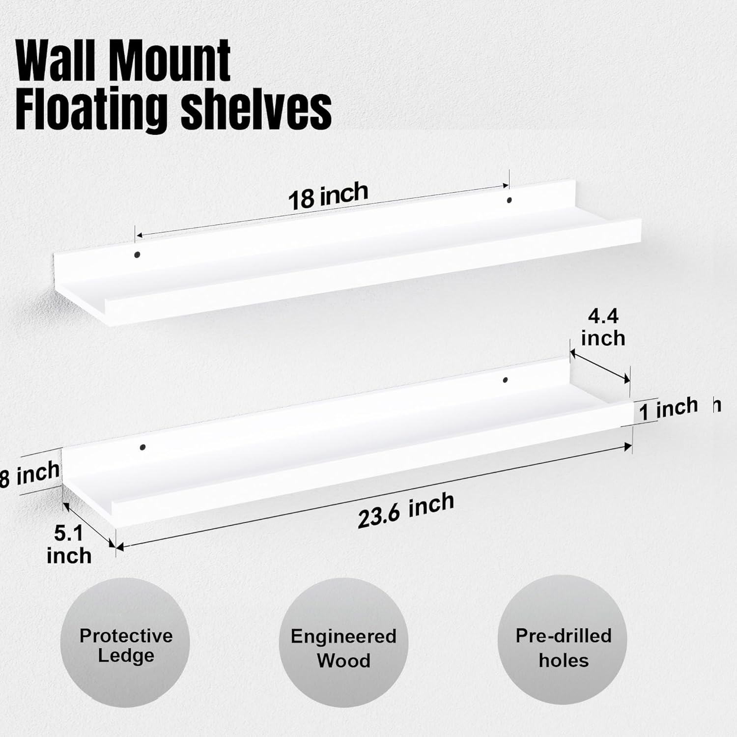 - Sturdy Wall Storage - Crafted from high-quality engineered wood, these shelves are designed to hold up to 20 lbs of art pieces. With dimensions of 5.3"D x 23.6 "W x 1.8"H, these shelves provide practical solutions for wall organization while complementing any decor style, from modern to traditional, rustic to contemporary.