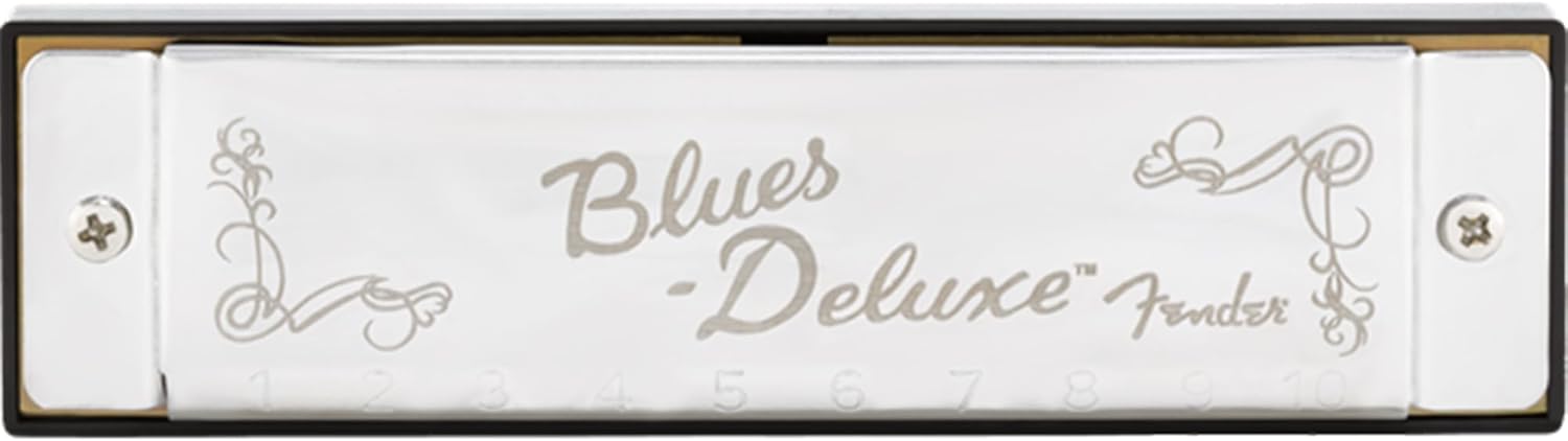 Fender Blues Deluxe Harmonica - Key of G Bundle with Carrying Case, Austin Bazaar Online Manual, and Polishing Cloth