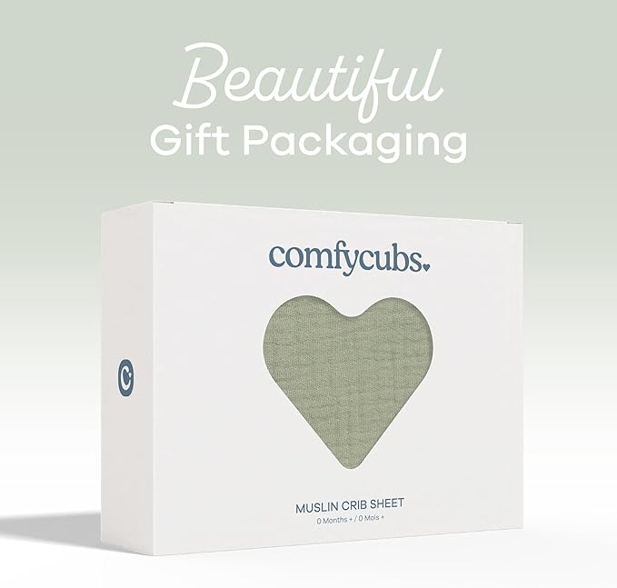 Comfy Cubs 100% Muslin Cotton Fitted Crib Sheet - Soft, Standard & Breathable Crib Sheets for Toddler Mattress - Snug Fit, Secure Elastic with Beautiful Packaging for Boys & Girls - Sage