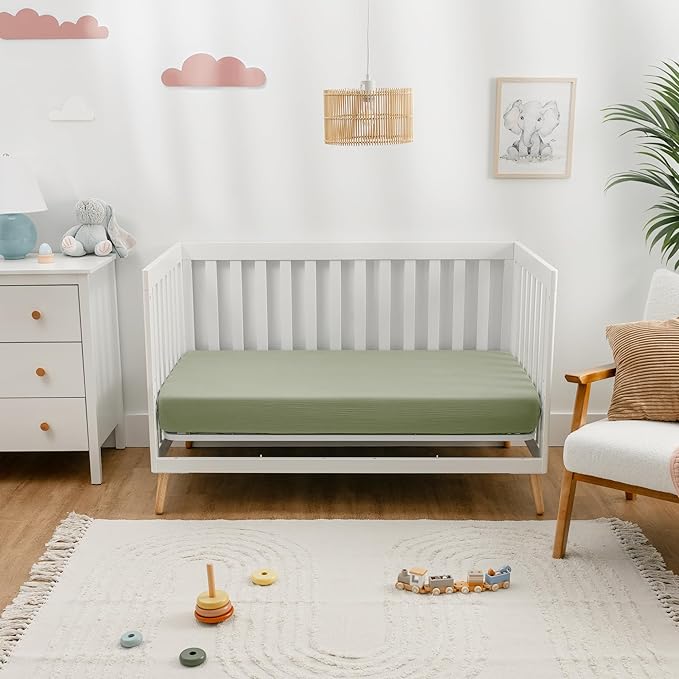 - 100% Muslin Cotton Fitted Sheet Crib: Made from premium muslin cotton, this crib fitted sheet offers a soft, breathable surface to keep your baby cozy all night. Designed to get even softer with each wash.