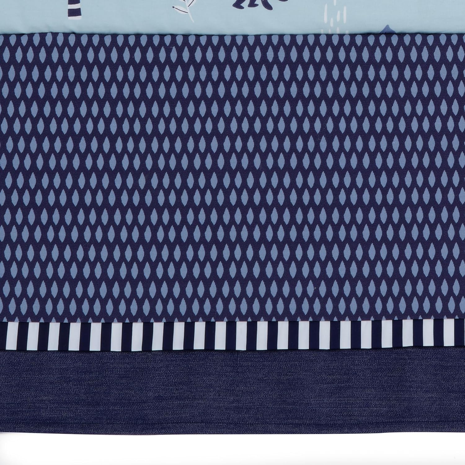 - 3-piece crib bedding set includes one quilt, one breathable 100% cotton fitted crib sheet and one crib skirt