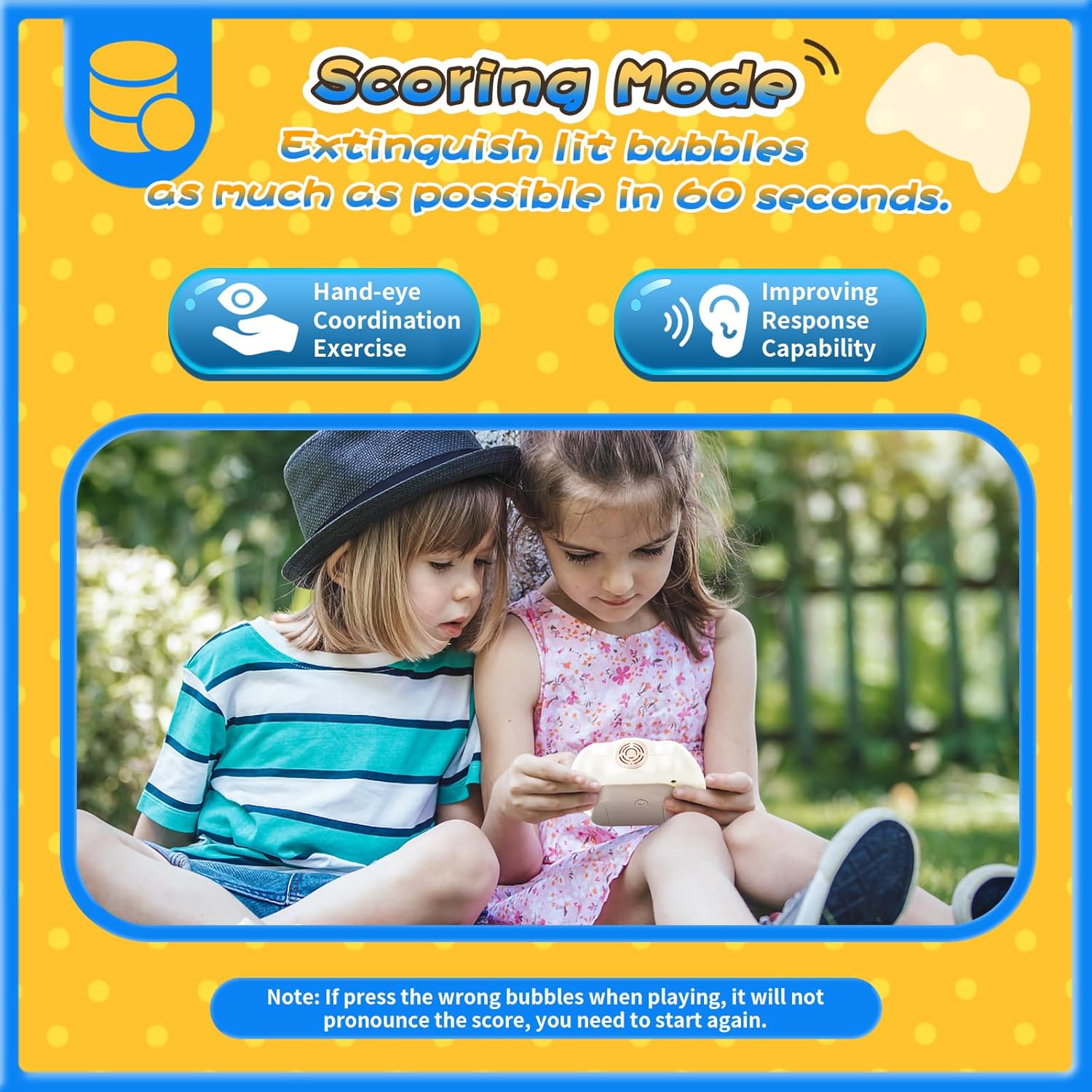 - 💡【Light-up Pop Fidget Toy】Classic pop game meets electronic handheld game! Our newly released quick push bubble game is more simple and funnier than other handheld games. It can promote your child's sensory development, and engage their positive thinking, hand-eye coordination, and brain training during playing.