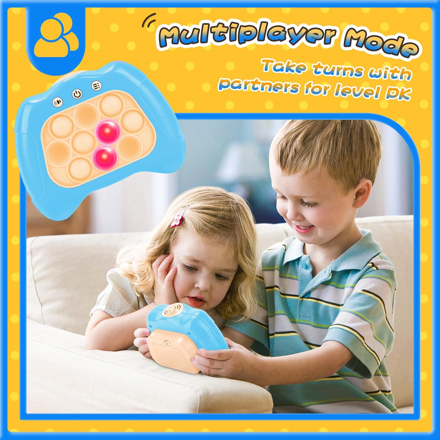- LIGHT-UP POP FIDGET TOY: Classic pop game meets electronic handheld game! Our newly released quick push bubble game can promote kids sensory development, and engage their positive thinking, hand-eye coordination, and brain training during playing