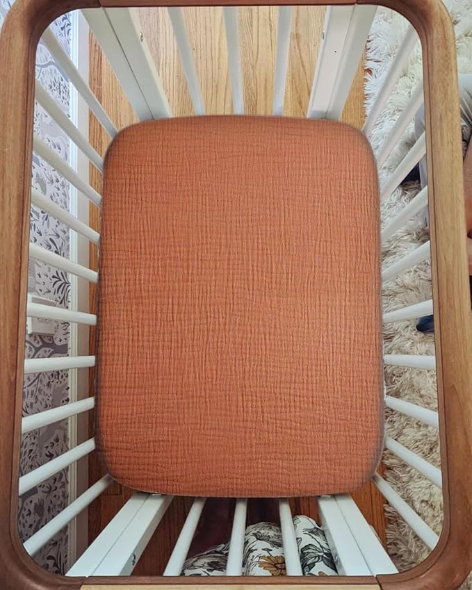 Pack and Play Sheets for Baby Boys and Girls 39"x27"x3", Neutral Muslin Cotton Pack N Play Mattresses Sheet with Boho Style, Soft and Breathable Comfort (Brick)