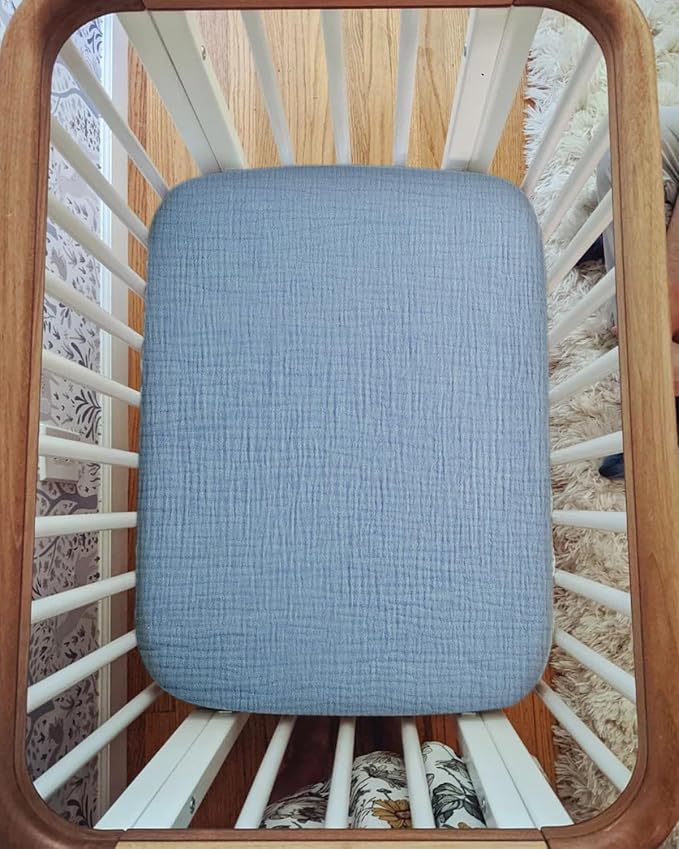 - Muslin Cotton: Our pack n play sheet is made of muslin cotton, with a smooth surface and comfortable touch, features a light drapability and rigidity, suitable for your baby's delicate skin, and let your little one have a better sleep.