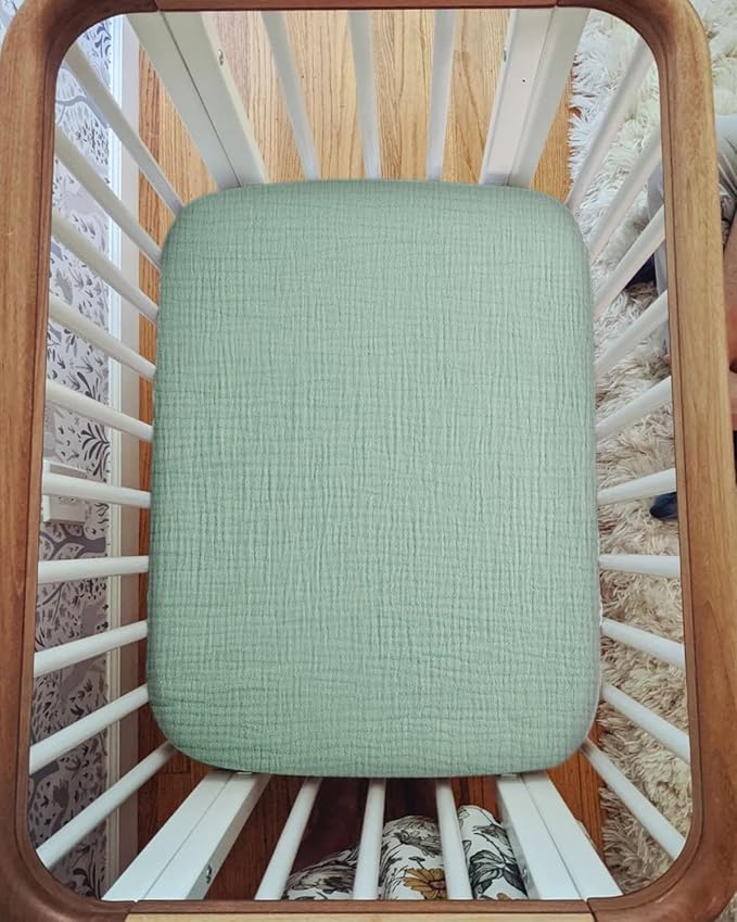 - Muslin Cotton: Our pack n play sheet is made of muslin cotton, with a smooth surface and comfortable touch, features a light drapability and rigidity, suitable for your baby's delicate skin, and let your little one have a better sleep.