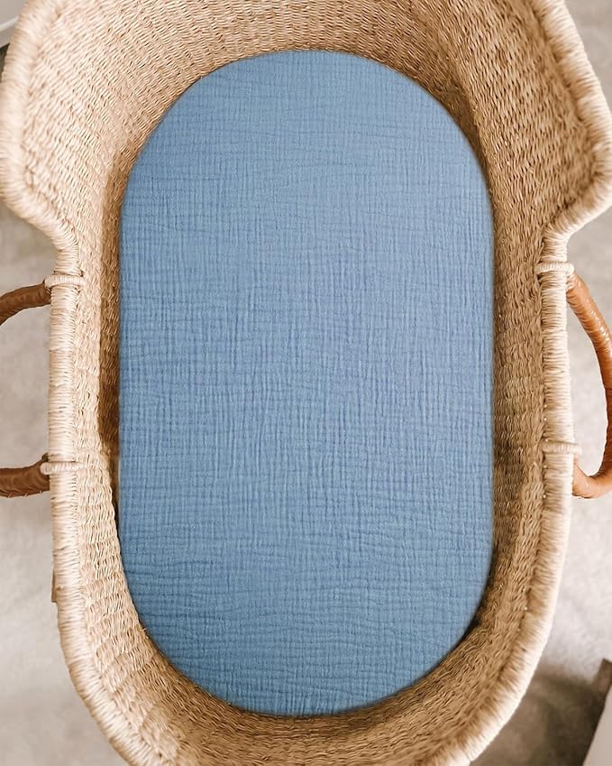 Bassinet Sheet for Baby Boy and Girl, Fitted Sheets for Rectangle, Oval, Hourglass Bassinet Mattress, Muslin Moses Basket Sheets with Neutral Style (Costume Blue)