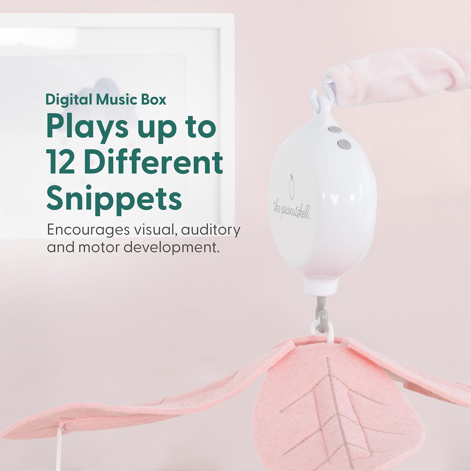 - Versatile Melodies: With a digital music box that offers 12 different lullabies, you can easily change the song to suit your baby’s mood. The handy volume control lets you keep it soft or a little louder.