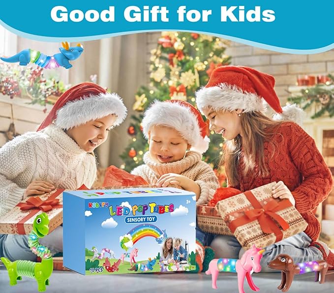 - Pop Tubes LED Light Toys: Pop tubes fidget toys with led lights design;You just need to tap on the tube and it will flash;You can create your own light show and party at dark