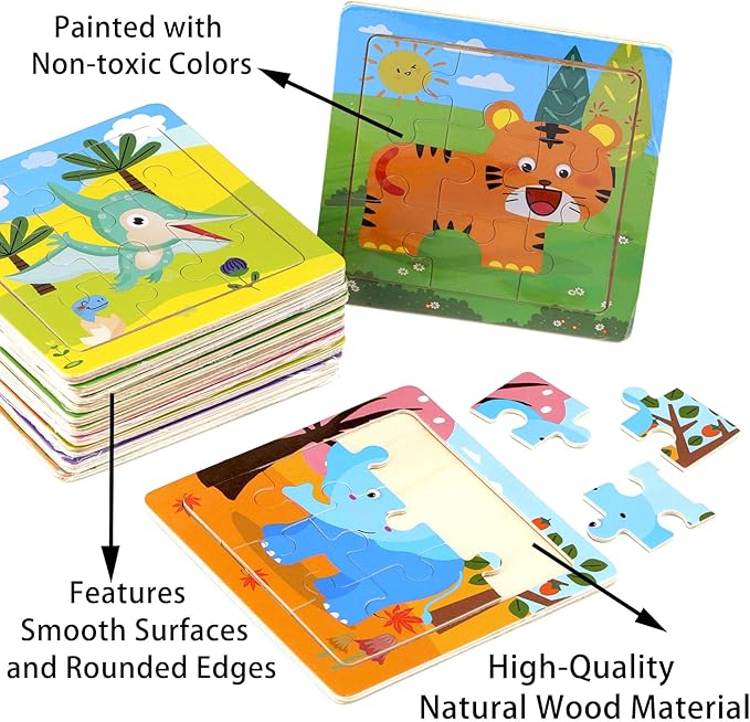- 🦄Learning Fun:The 12 Style Wooden animal jigsaw puzzles allows children to practice animal identification skills while having fun!