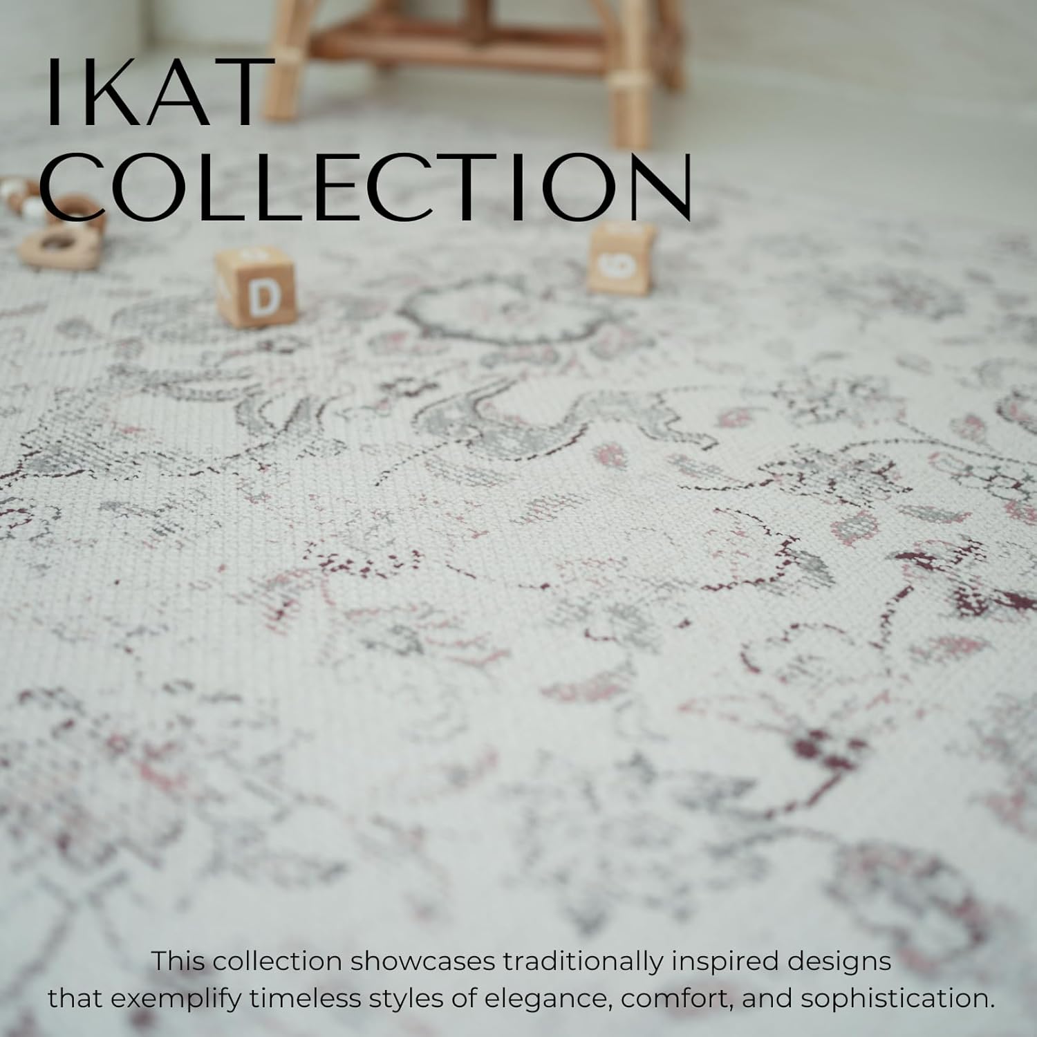 - IKAT COLLECTION- This collection showcases traditionally inspired designs that exemplify timeless styles of elegance, comfort, and sophistication. The pattern on the design is not repeated unlike other play mats.