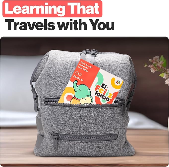 - TUMMY TIME ESSENTIAL: This Spanish high contrast baby toy for newborns is designed to stand up on its own, making it perfect for tummy time. It's easy to slip into your diaper bag for learning on the go.