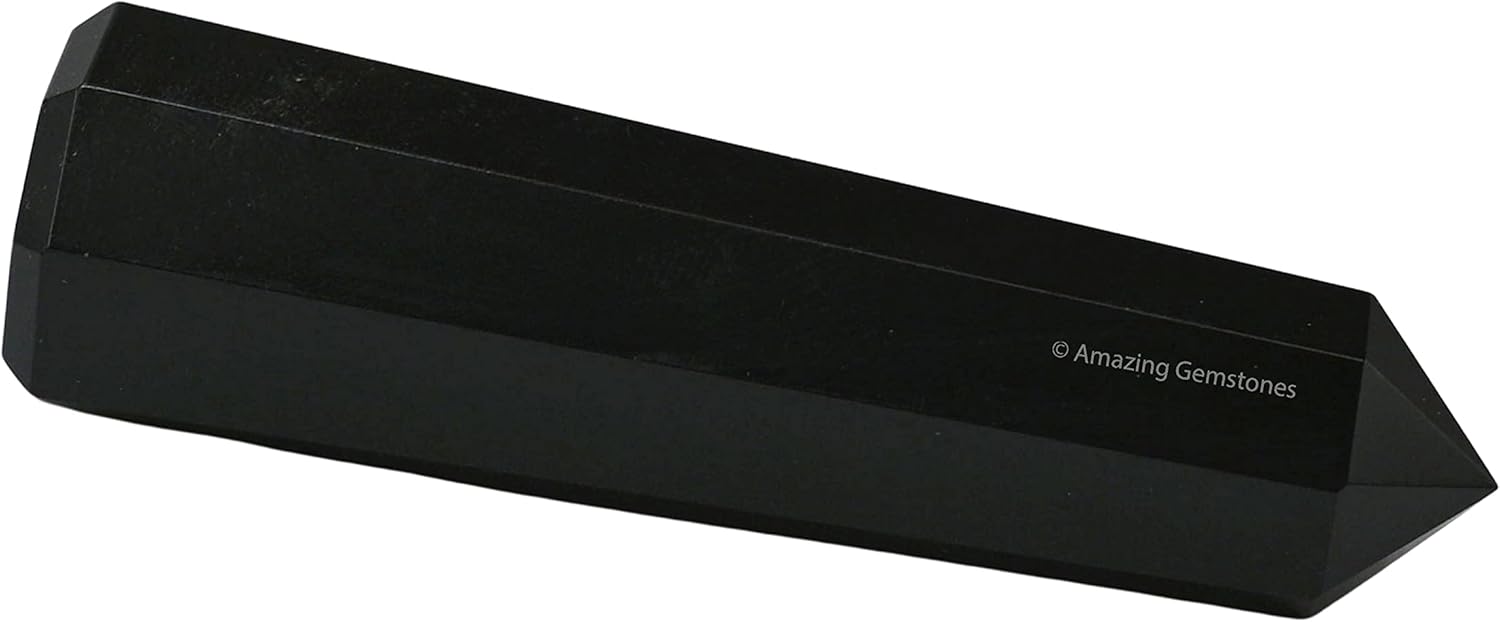 - Black Obsidian Crystal Tower will uplift and purify the energy (if its point is not damaged), so you can place it in any area that needs to be re-energized with strong energy. Length of this tower / wand / obelisk / point is 3" inch to 4" inch (7.5cm to 10cm) & width is 0.75 inch (2 cm).