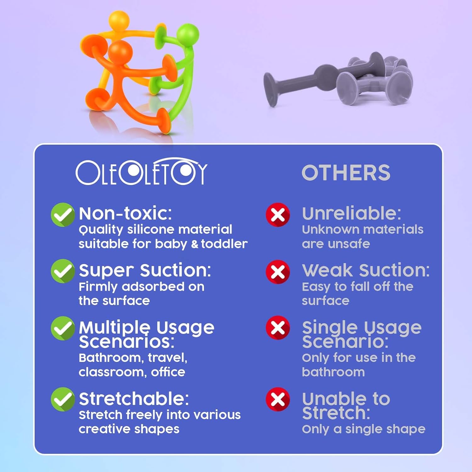 - Fun Suction Toys: Connect, build, stick, pop! Suction cup toys can attach to most non-porous surfaces such as bathtubs, windows, cars, high chairs, glass tables, etc; The 4 connection points provide children with more choices, allowing them to fully unleash imagination and creativity, exercise hand eye coordination, cultivate fine motor skills, and enjoy hours of sensory fun