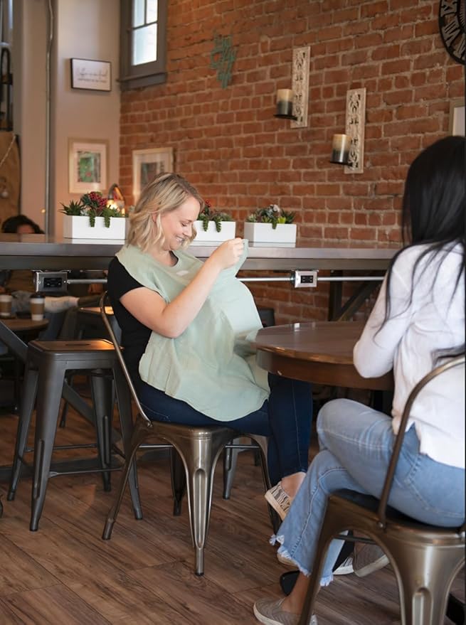 Muslin Nursing Cover for Baby Breastfeeding โ with Peekaboo Window -100% Breathable Cotton Privacy Nursing Shawl - Multiuse Apron for Moms