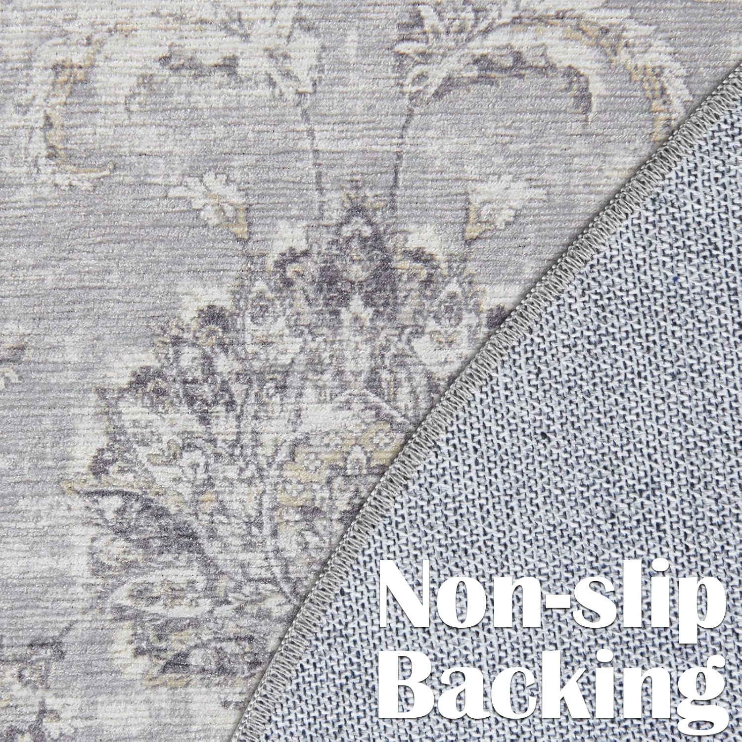 jinchan Round Rug 4ft Area Rugs Vintage Floral Distressed Design - Machine Washable Non-Slip Low-Pile Ultra-Thin Circle Rug for Entryway Bedside Living Room Dining Room Bedroom (4' Round,Grey)