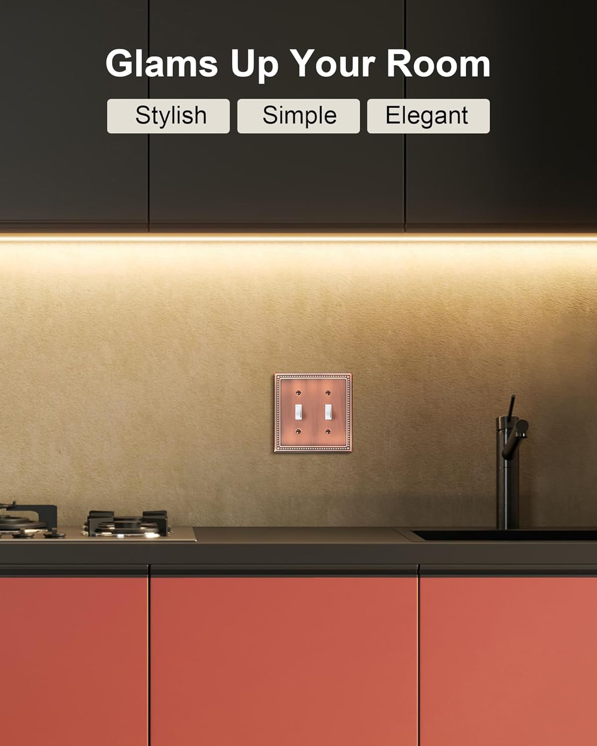 2-Pack Double Toggle Light Switch Cover Plate, Pearls Decorative Dual Switch Plate Covers, Antique Copper 2 Gang Metal Wall Plate, Corrosion Resistant