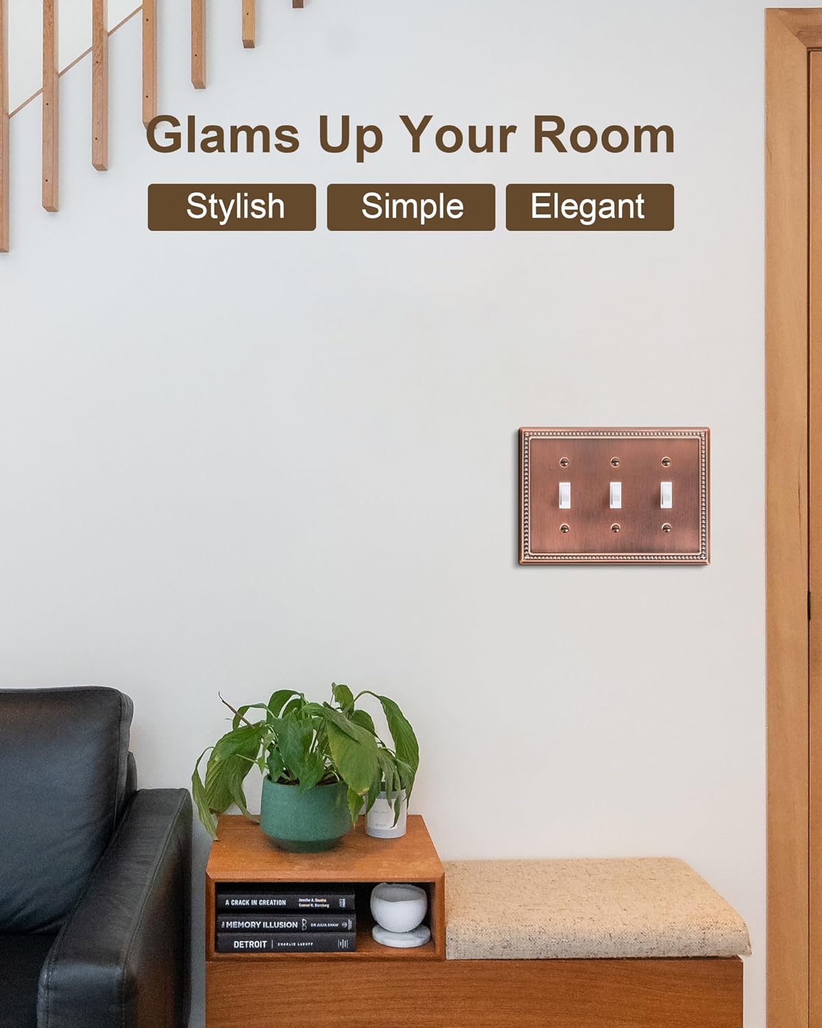 2-Pack Triple Toggle Light Switch Cover Plate, Pearls Decorative Switch Plate Covers, Antique Copper 3 Gang Metal Wall Plate, Corrosion Resistant