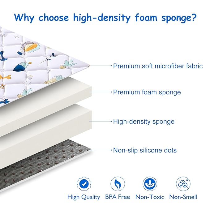 - Safety and Non-slip: The non-slip design on the bottom of the play mat ensures stability and safety during playtime, providing a safe place for your kids to romp around. Our baby mat meets US CPC certification and regulations and passes phthalate, lead, and toxicity tests. So you can trust that our product is safe for your little one