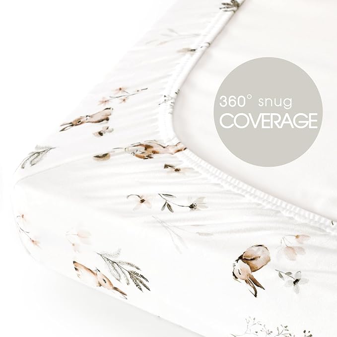 - Apple It Within Seconds: Thanks to the elastic bottom, our pack n play sheets come in a classic, Stylish Watercolor Rabbit Pattern that will put the finishing touches to any bedding. Make sure to give your darling a serene and calm bed to rest in.
