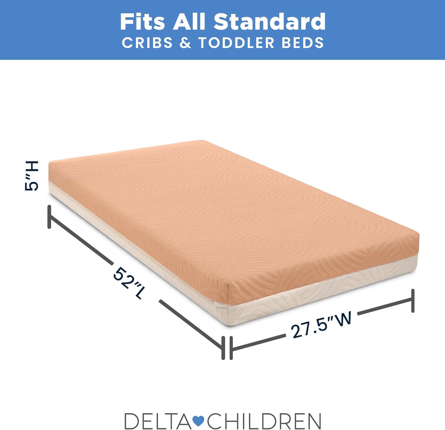 Delta Children Summer Breeze Mattress - Breathable Baby Crib & Toddler Mattress with Cloud Core - Machine Washable Cover - GREENGUARD Gold – Waterproof - Sustainably Sourced Core, Apricot/White