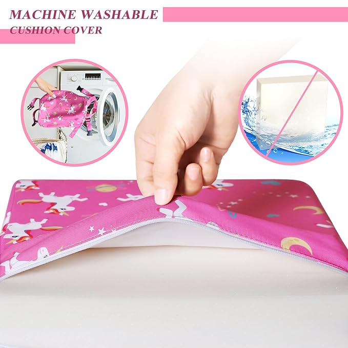 - [Comfortable and Durable Material] Our toddler booster seat is made of high-quality polyester and high-density sponge, ensuring long-lasting comfort and durability. The soft canvas cover is also gentle on your kid's skin