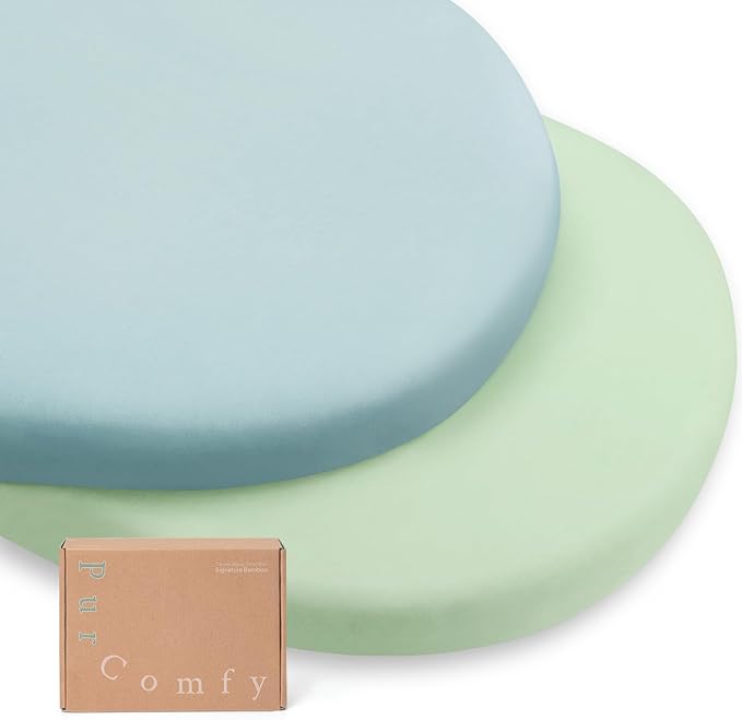 PurComfy Supersoft Fitted Bassinet Sheets, Premium Bamboo Viscose Cradle Sheets, Streachy Hypoallergenic Breathable Moses Basket Oval Rectangle Pad/Mattress Universal Fit for Halo, Dream on Me, 2-Pack