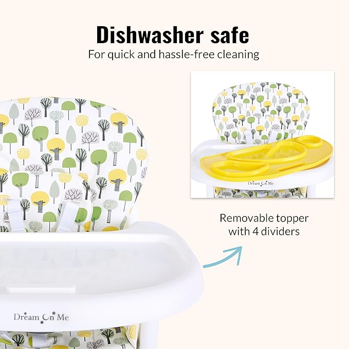 - COMPLETE CONVENIENCE: The Dream On Me Curio Sit N Seek High Chair offers 3 height level adjustments, 3-position adjustable tray and an adjustable footrest, ensuring your child is always at the perfect level for feeding and interacting with the family