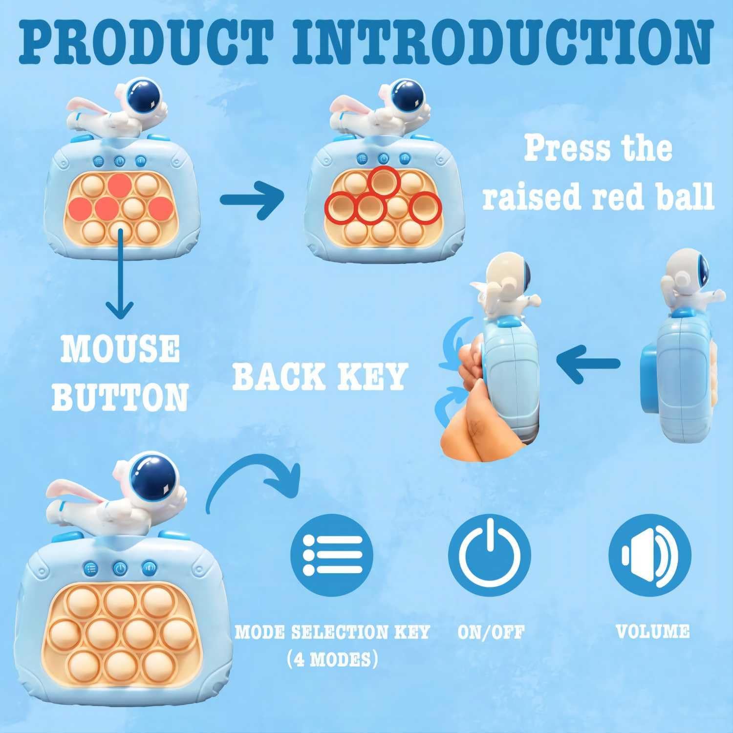 - 🎁【Easy To Play】Pop all the lit bubbles as soon as they appear, and then press the big button on the back to reset the bubbles before time runs out! Keep popping the bubbles fast to level up. It is a perfect gift for boys and girls to developing fine motor skills, cognitive abilities, and sensory processing skills, making it an ideal educational toy for kids.