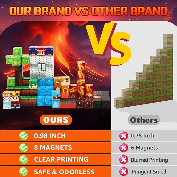 - Unlocking Your Child's Potential - Magnetic blocks are one of the best creative toys for kids who love to build. Kids can use their imagination to build volcanoes, forests, lava waterfalls and more. With this magnetic building block, kids can use their creativity, spatial awareness and problem solving skills while experimenting with gravity, magnetism and kinetic energy. It's perfect for kids on the go or in the classroom.