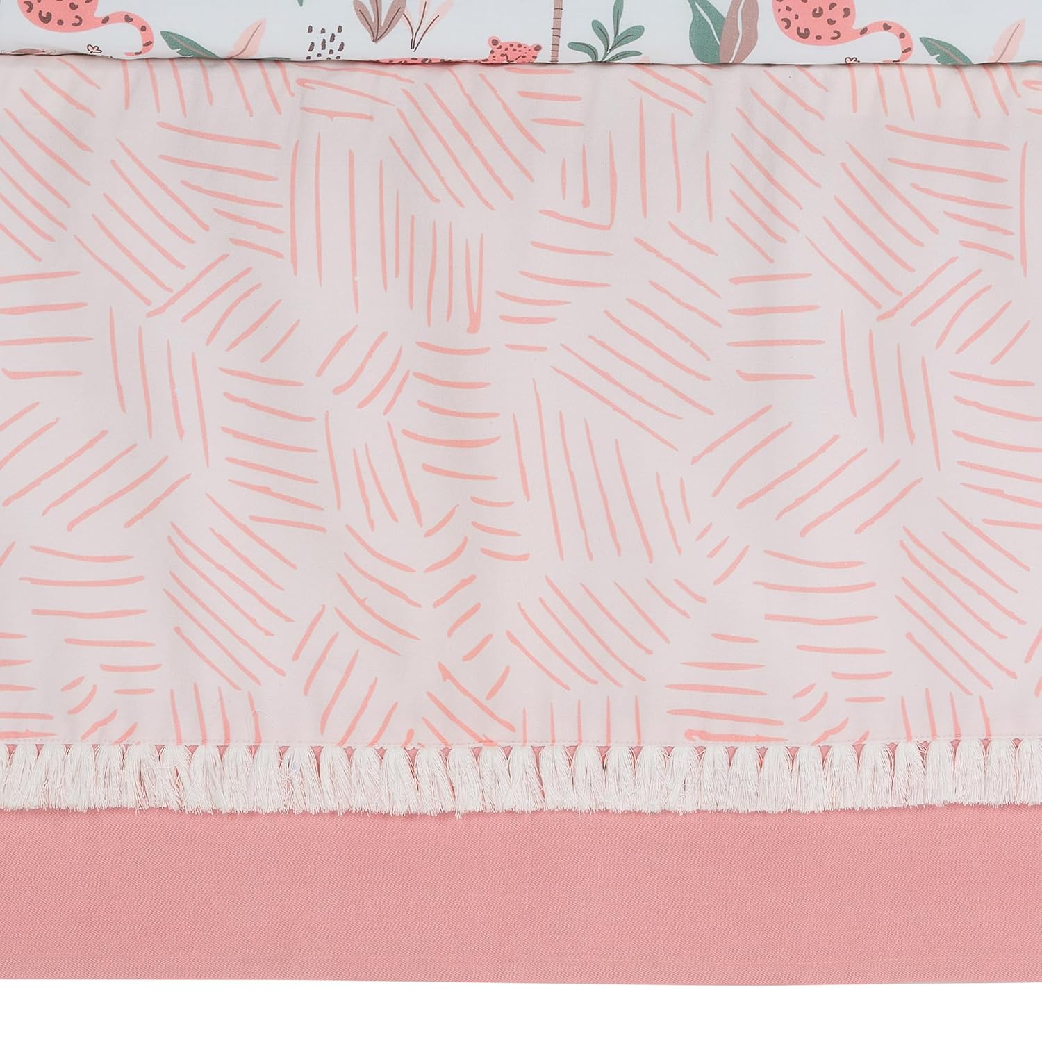 - Decorative fringed crib skirt adds the finishing touch to your child’s crib