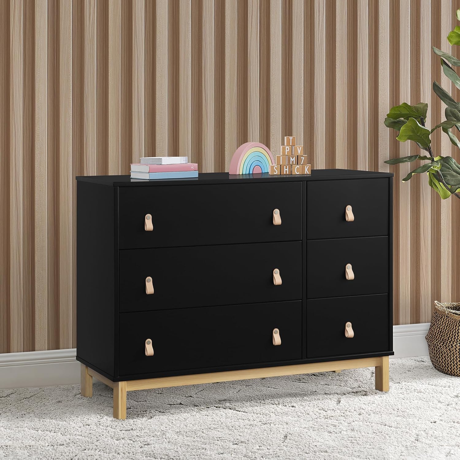 GAP babyGap Legacy 6 Drawer Dresser with Leather Pulls and Interlocking Drawers - Greenguard Gold Certified, Ebony/Natural