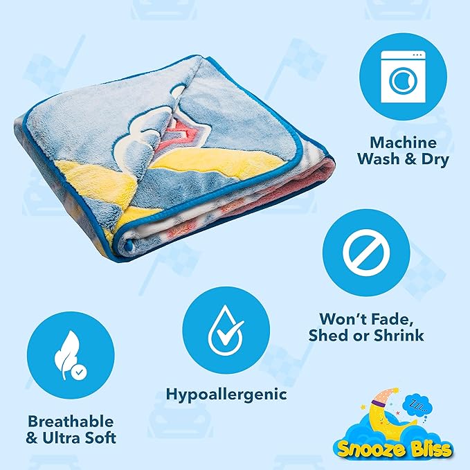 - 🚗 FUN DAY & NIGHT: These hot rods have wheels burning rubber as they fly down the race car track lightning fast on this race car blanket for kids. Our glow in the dark blanket is fun for travel, sleepovers, nap time bedding, or as a toddler blanket for daycare.