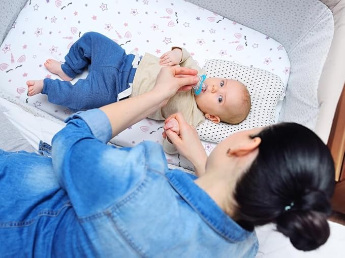 4 Pack Soft Baby Girl N Play Sheets for Mini Crib Mattress Unicron Rainbow Heart Cute Neutral Polyester Unisex Fitted Mini Crib Sheets Set for Baby Girls