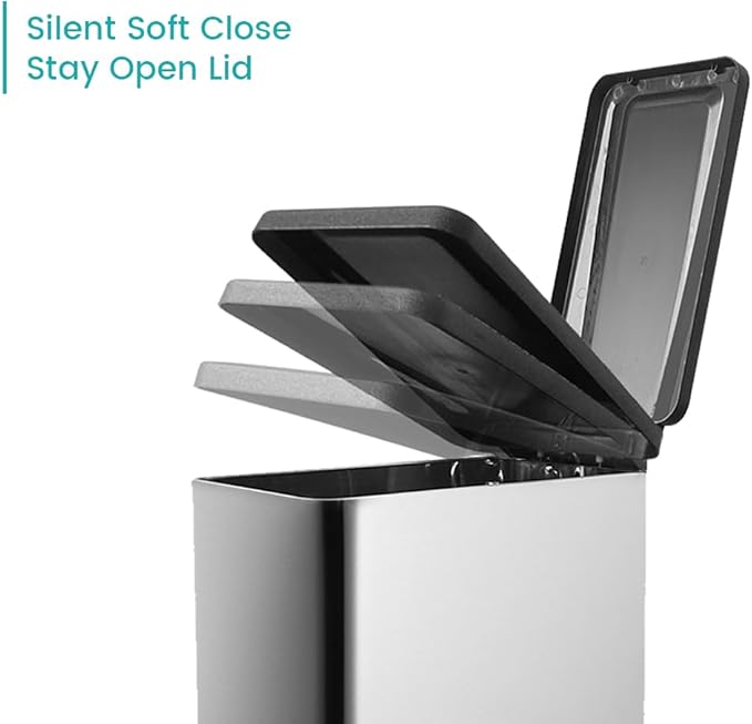- [Silent Close Lid] Our slim kitchen bin use a soft close component,the garbage bin does not close suddenly, but slowly and quietly.